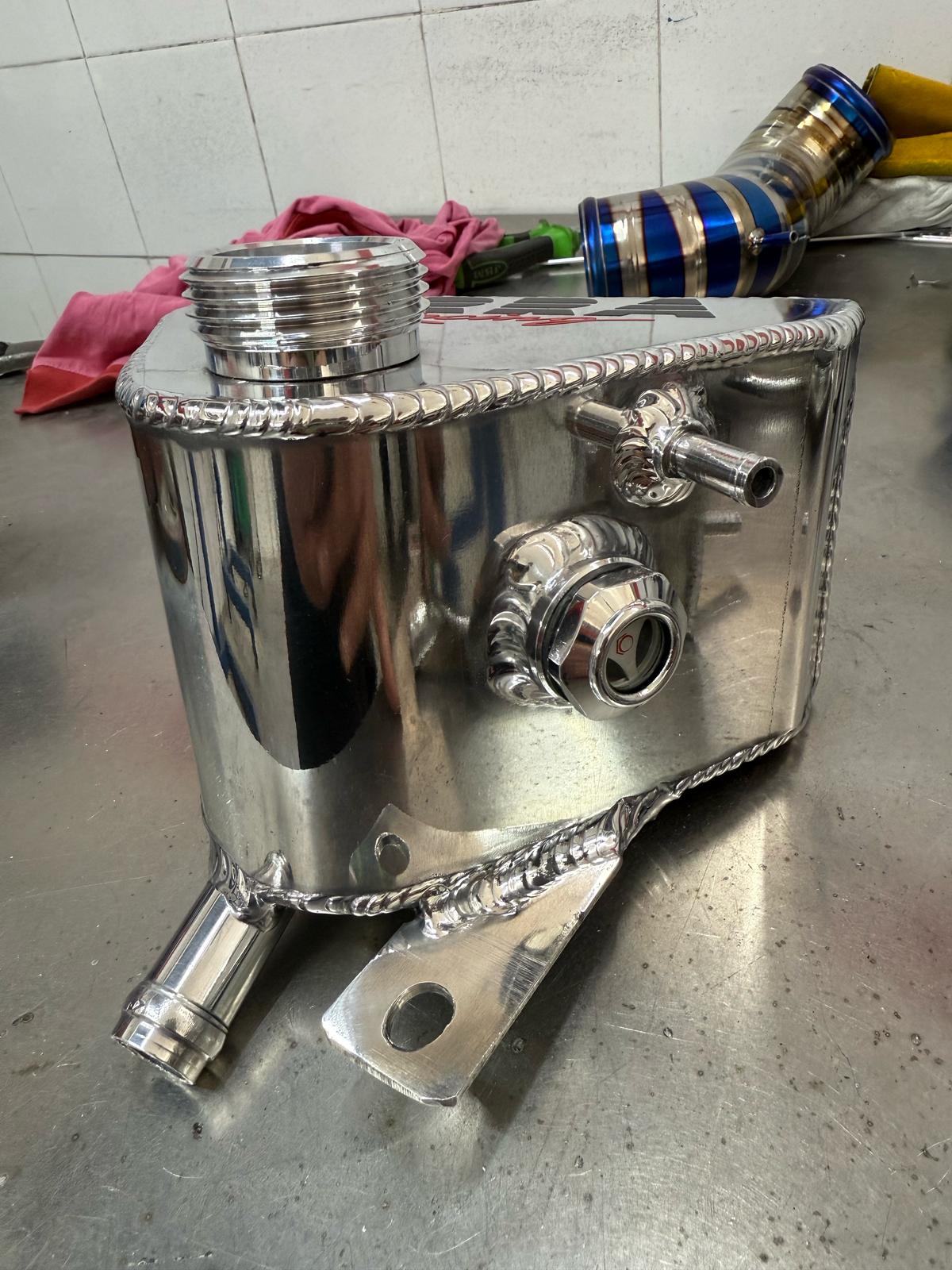 Vaso di espansione creato in alluminio con OBLÒ per il livello acqua.